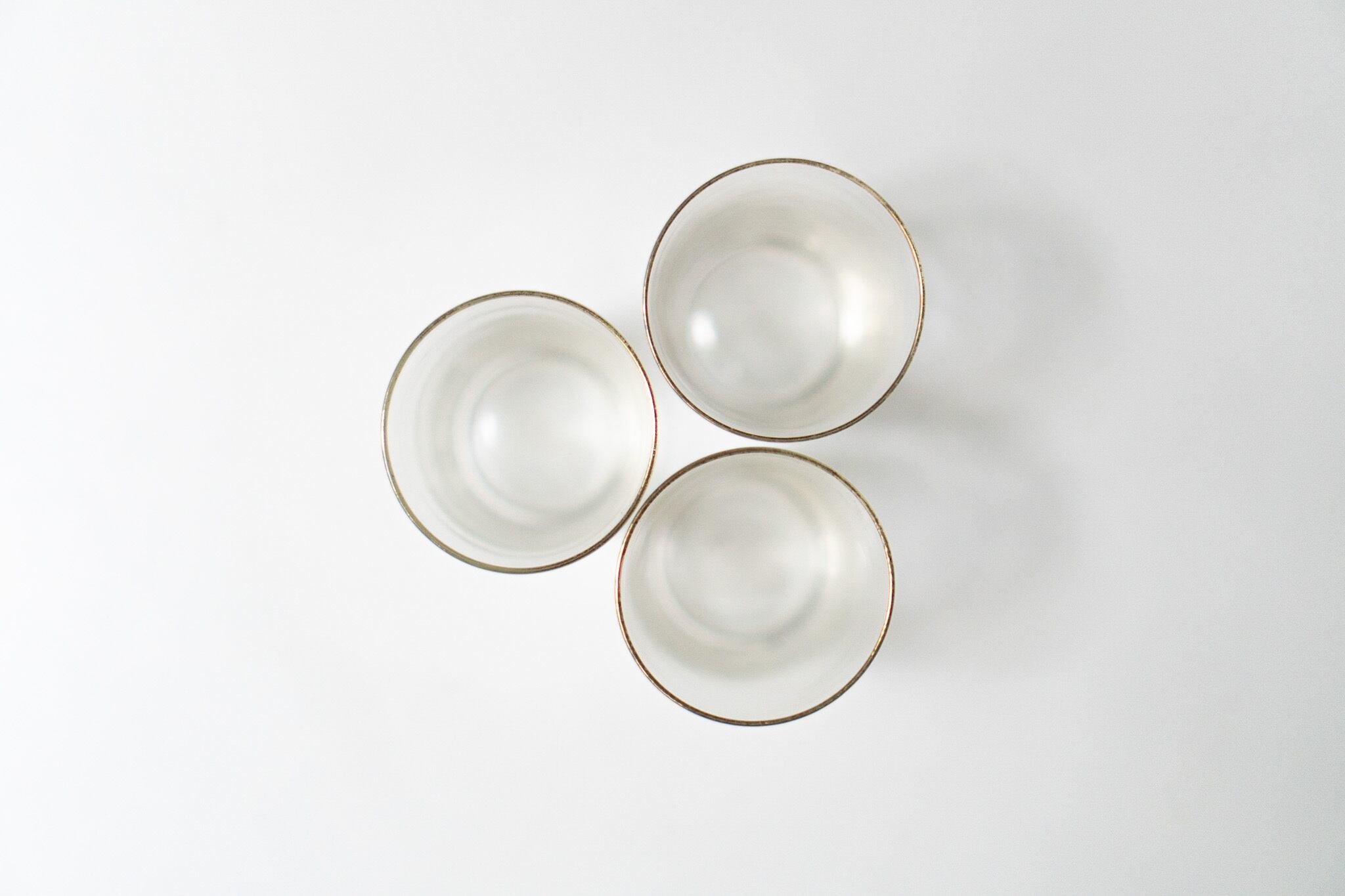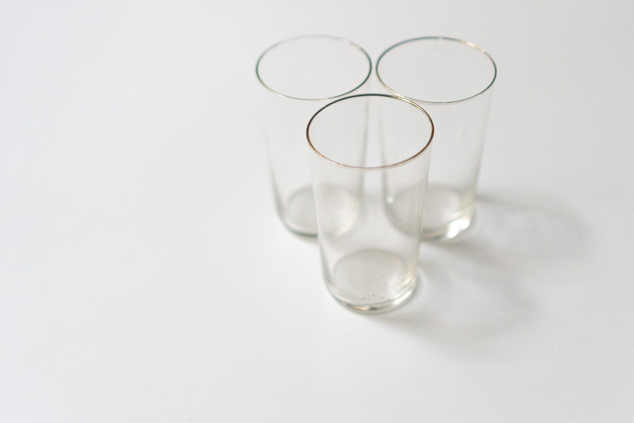 Three of each are different in size and the glasses look distorted.