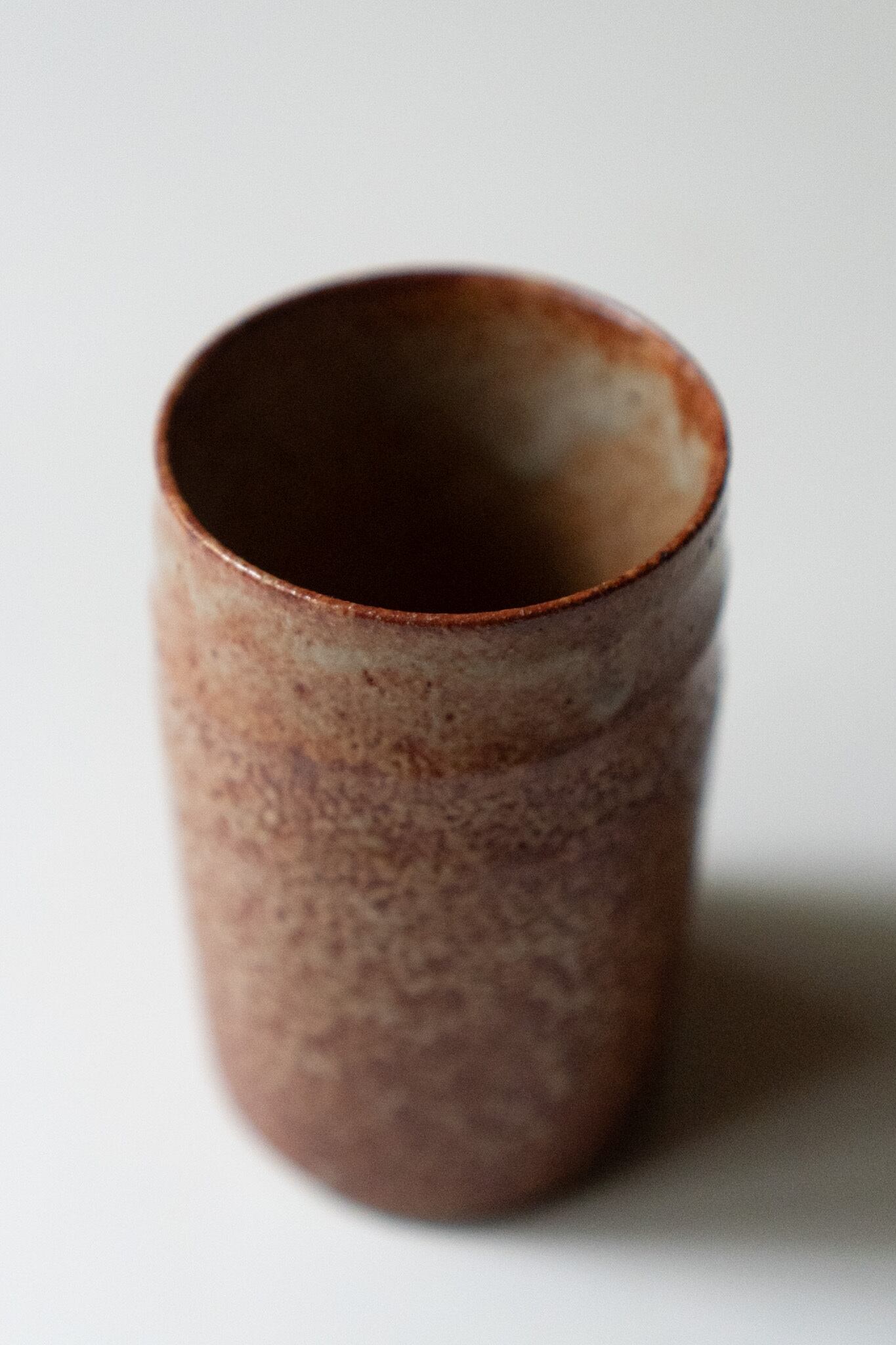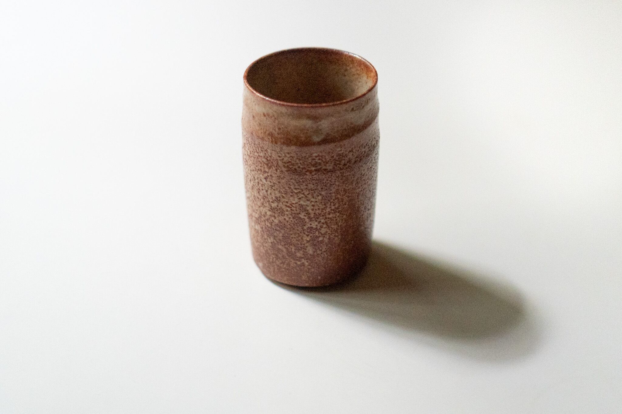 This can be used as a pen holder because of the height, appreciating grainy and whitish orange surface.
