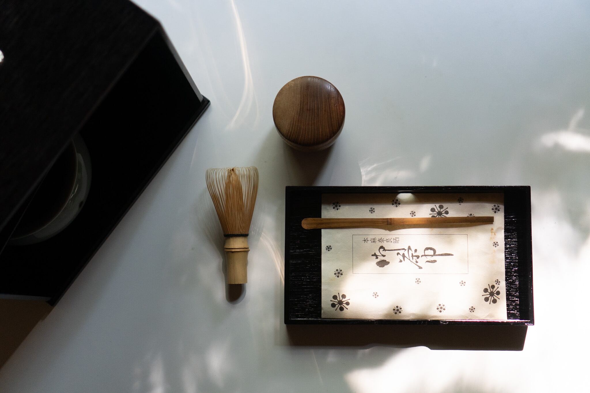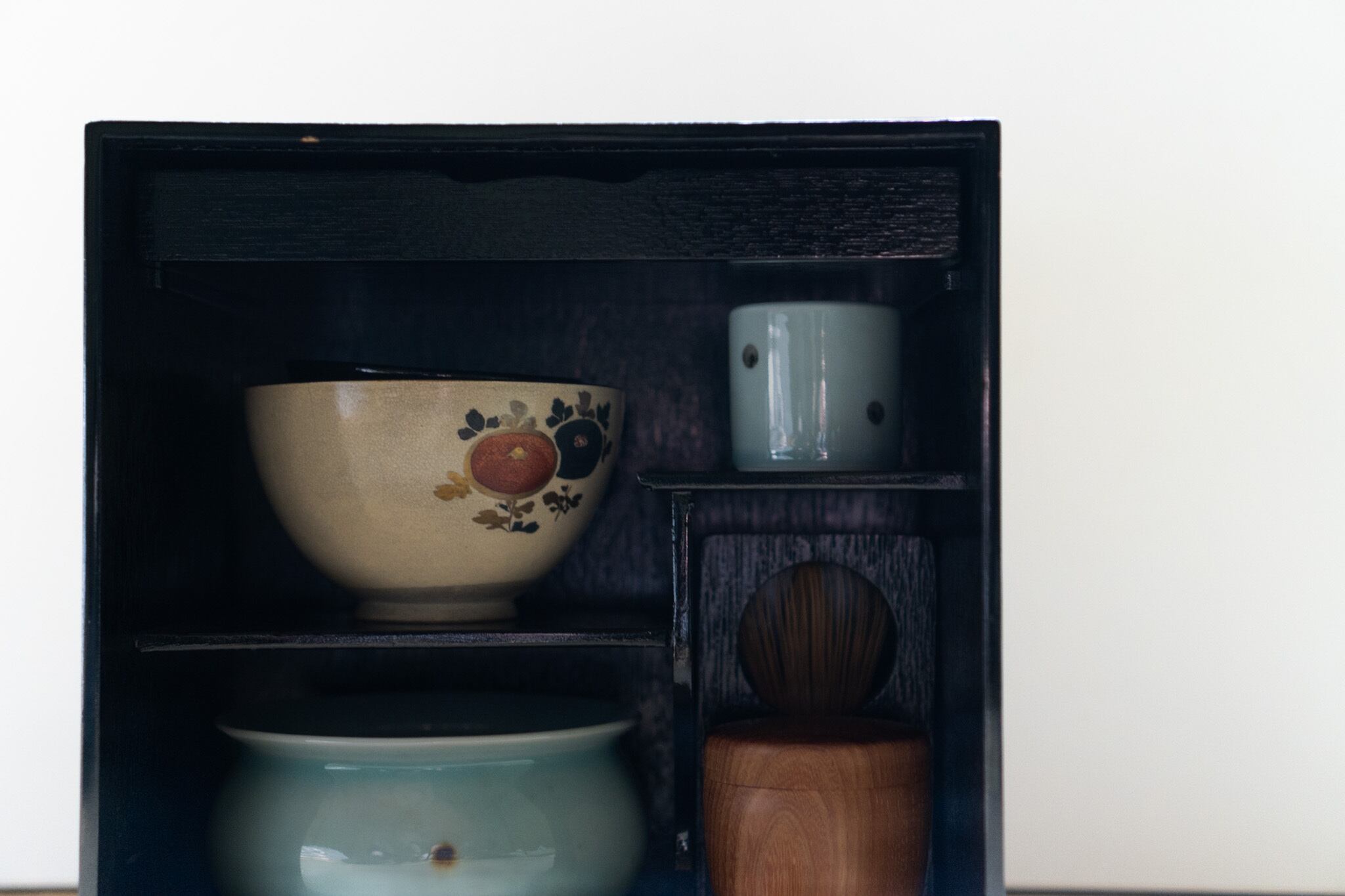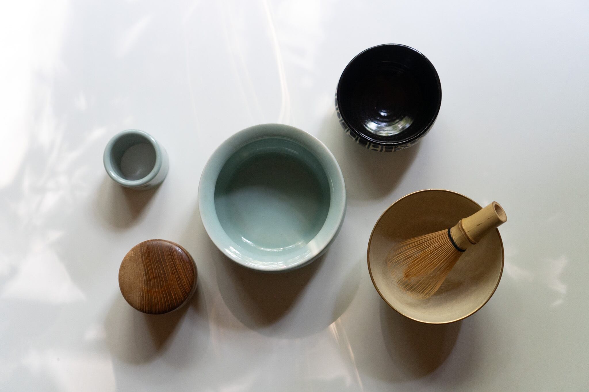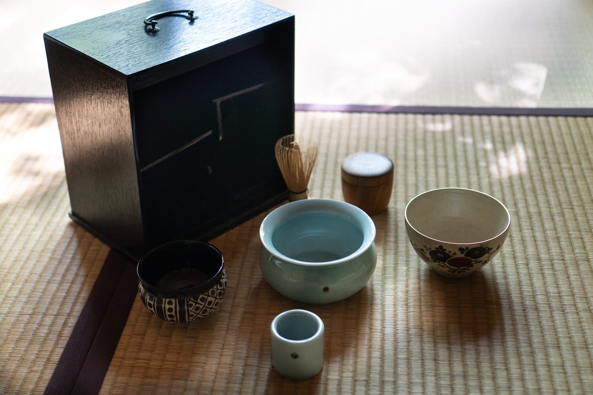 2 Tea bowls / Natsume(Jar) / Cha-sen(Whisk) / Futa-oki(Lid rest) / Yusamashi(Bowl) / Cha-shaku(Scoop) / Cha-kin(Cloth)
