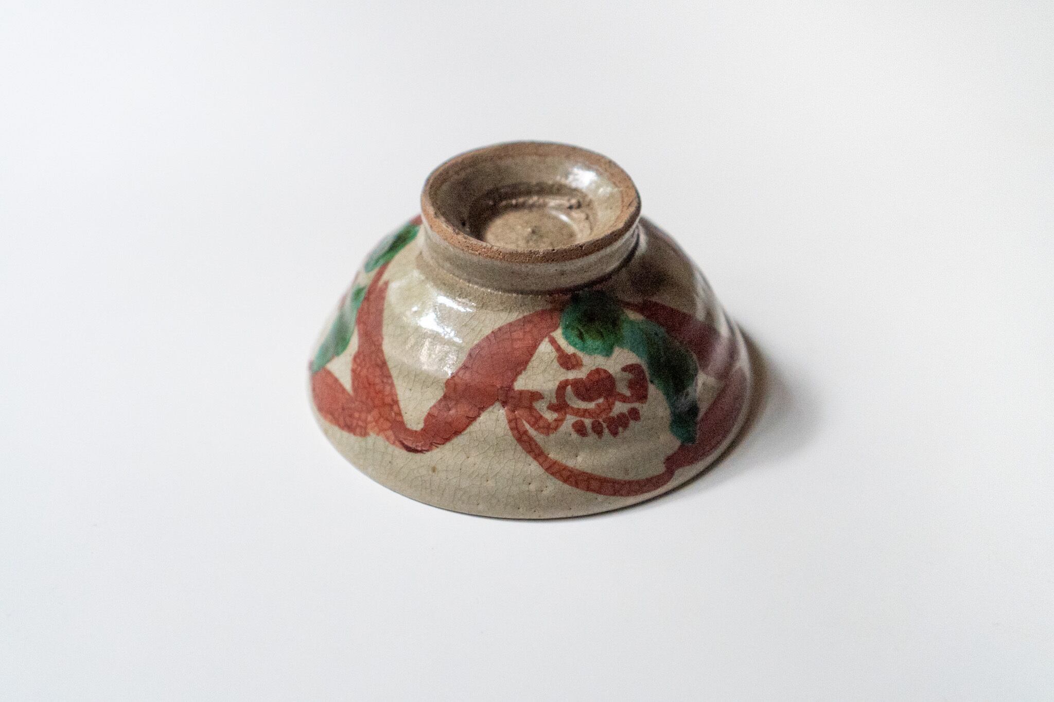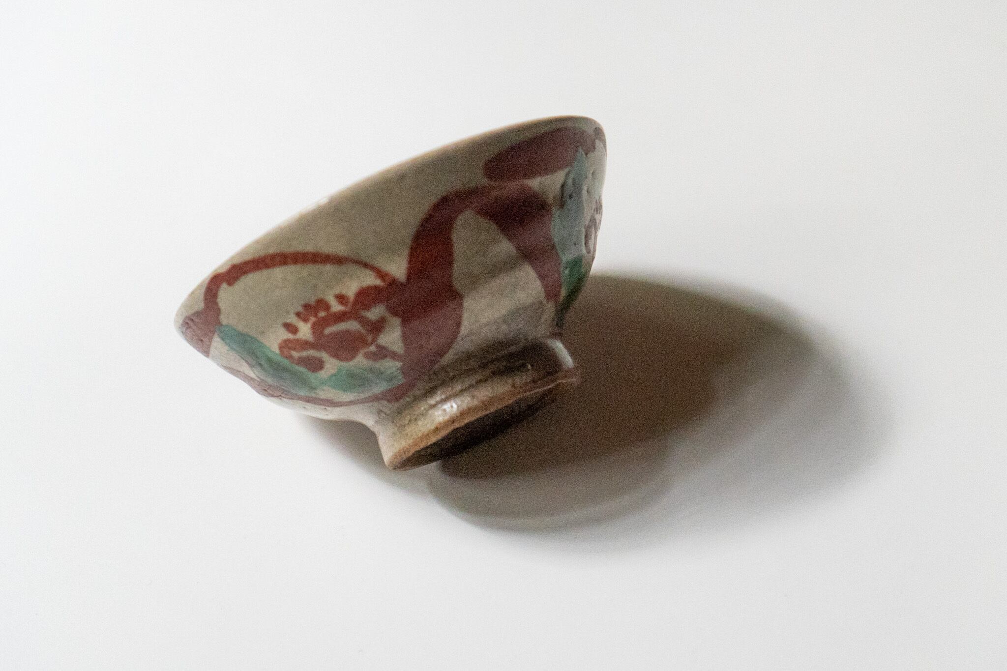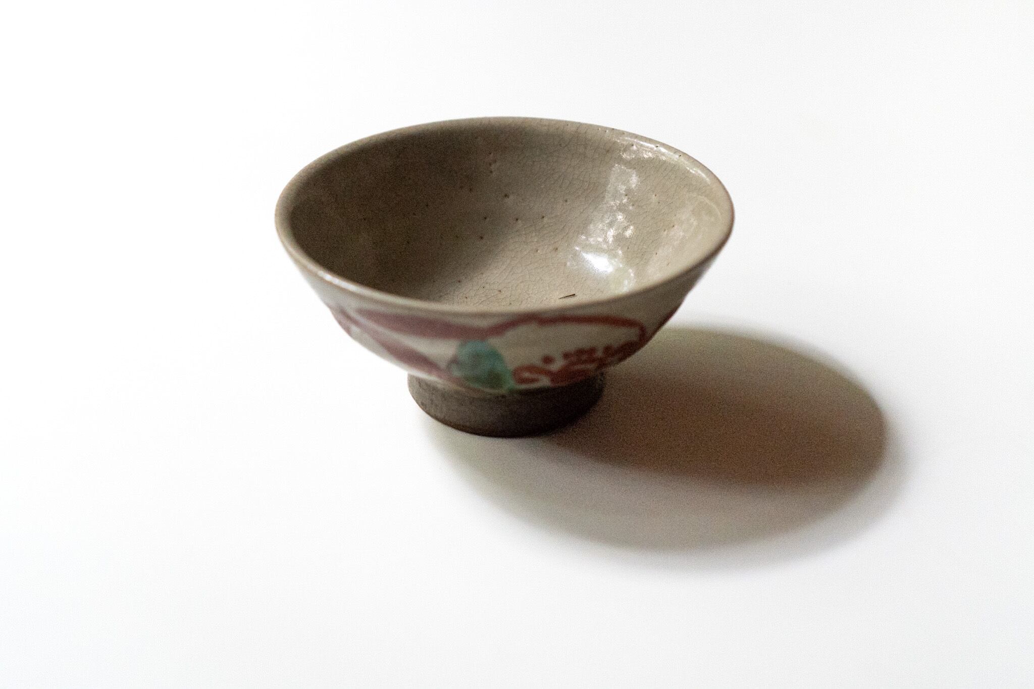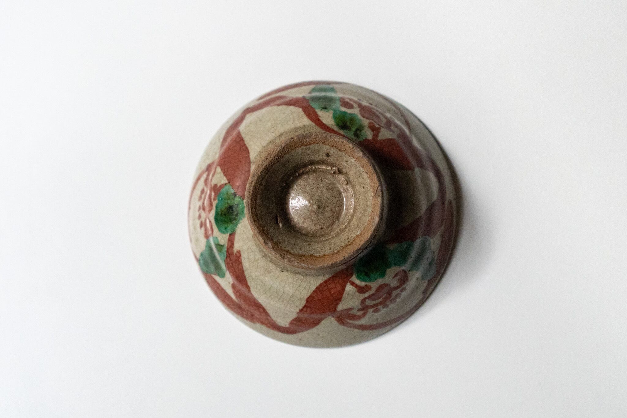 It has graphical hand painted red flowers ("Aka" means red and "E" means drawing) and "kannyu", a decorative method that intentionally creates fine cracks on it.