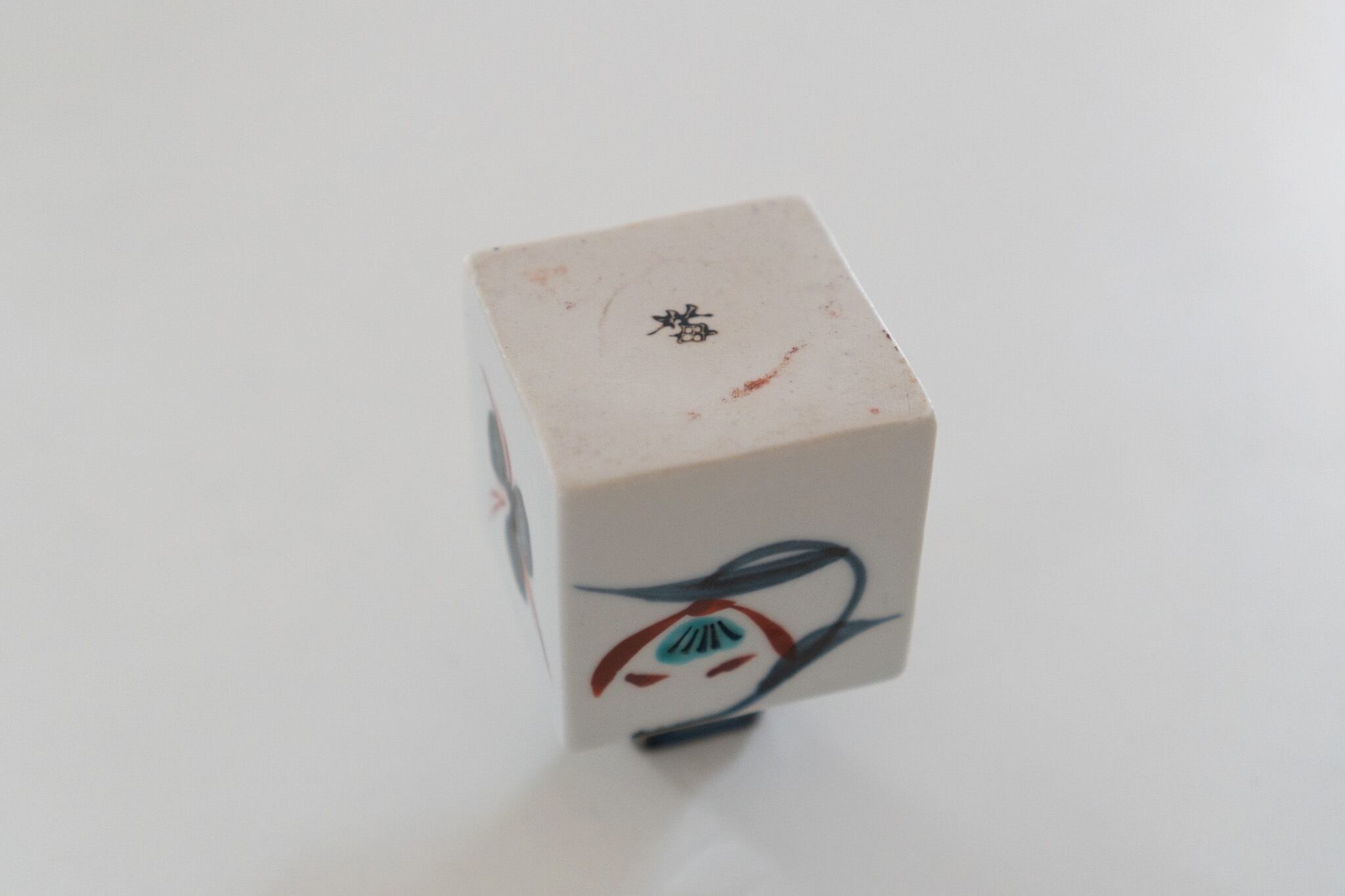 2 types of hand painted motifs on the sides, and 梅 (=plum) on the back side.